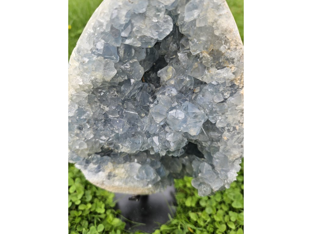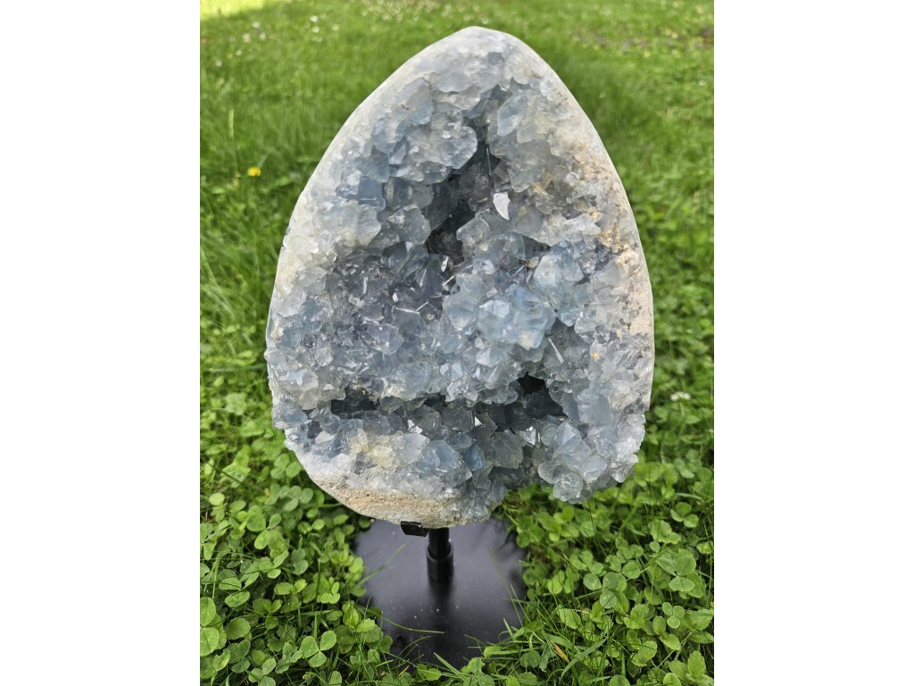 Celestýn s překrásnými světle modrými krystaly. Jedná se o přírodní minerál, ideální pro sběratele, milovníky kamenů nebo jako jedinečný dekorační prvek. Celestýn je známý svým harmonizujícím účinkem a je spojován s klidem a duchovní rovnováhou.