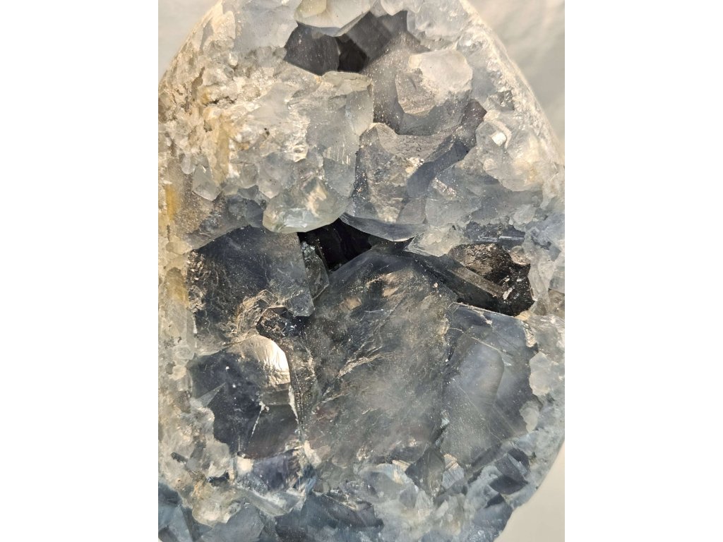 Celestýn s překrásnými světle modrými krystaly. Jedná se o přírodní minerál, ideální pro sběratele, milovníky kamenů nebo jako jedinečný dekorační prvek. Celestýn je známý svým harmonizujícím účinkem a je spojován s klidem a duchovní rovnováhou.